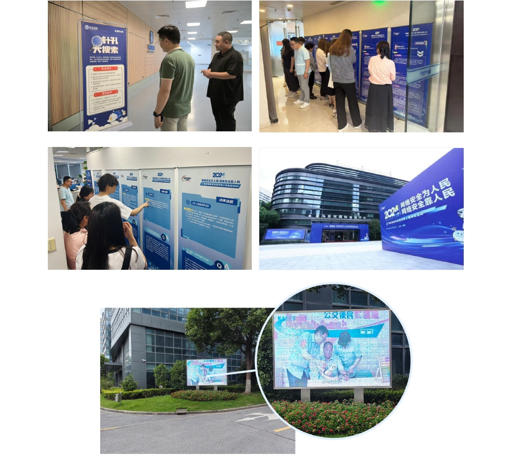 依托云工會(huì)平臺(tái)開展以網(wǎng)絡(luò)安全宣傳為主題的線上學(xué)習(xí)活動(dòng),圍繞《網(wǎng)絡(luò)安全法》《數(shù)據(jù)安全法》等5個(gè)主題開展知識(shí)競答,激發(fā)員工學(xué)習(xí)網(wǎng)絡(luò)安全知識(shí)的積極性,檢驗(yàn)提升員工的網(wǎng)絡(luò)安全防護(hù)水平。線下設(shè)置網(wǎng)絡(luò)安全宣傳展板、海報(bào)、LED屏幕、宣傳手冊(cè),邀請(qǐng)專家講課、組織培訓(xùn)、參觀展覽,設(shè)計(jì)模擬場景查找針孔探頭,提升員工信息安全意識(shí),筑牢個(gè)人信息安全之堤,保護(hù)企業(yè)信息安全。